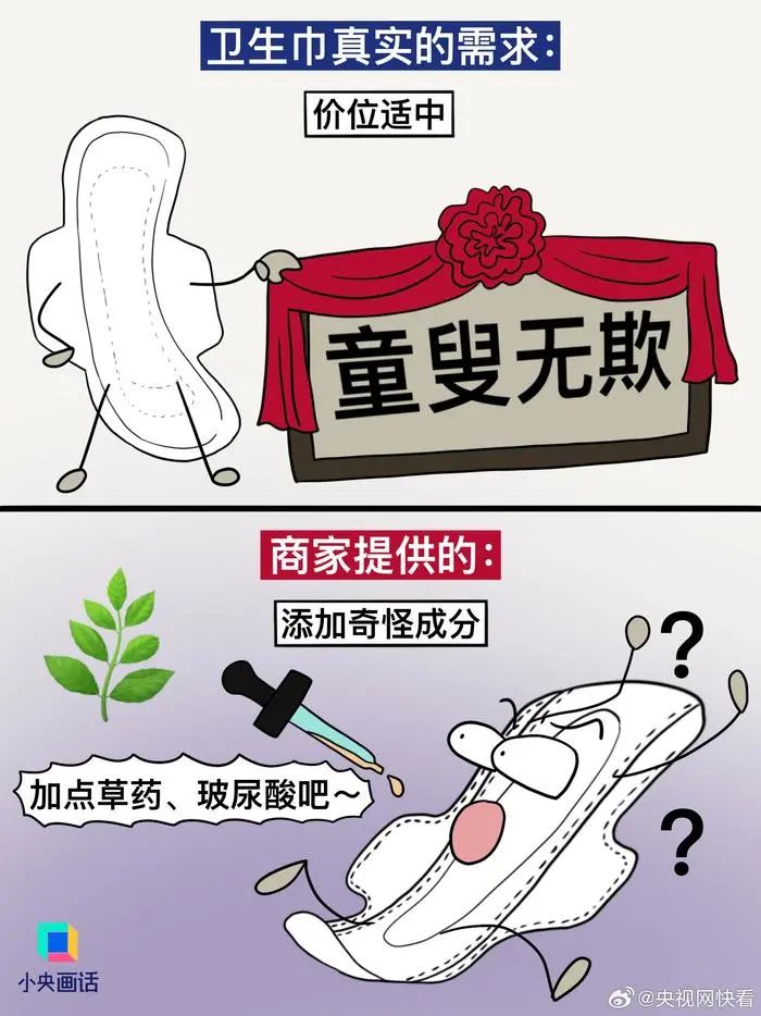 【#別拿消費主義那套來(lái)做衛生巾#】想不通,衛生巾這種每個(gè)月都要用的東西,怎么會(huì )做得又貴又難用。商家以為我需要:加冰、加熱、加玻尿酸、粉嫩包裝、明星代言……實(shí)際我需要的:干凈衛生、護翼好貼、安全不漏、價(jià)格適中。衛生巾是日用品,別搞消費主義輕奢那一套。(繪圖.阿彬的漫畫(huà)生活)#有種女性貧困叫月經(jīng)貧困#